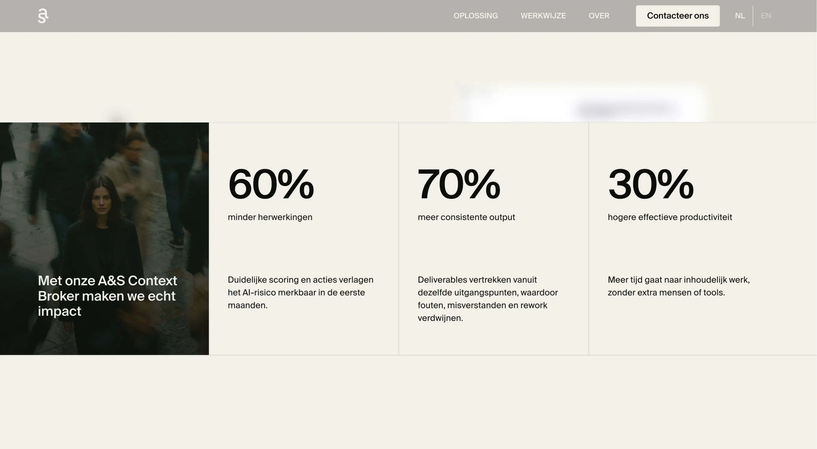 De visuele taal volgt daar rechtstreeks uit. Helder en precies, met één lettertype. De rijkdom zit in de fotografie, niet in het gebruik van aparte kleuren. Een sober palet van off-black en off-white met twee accentgroenen die spaarzaam worden ingezet.