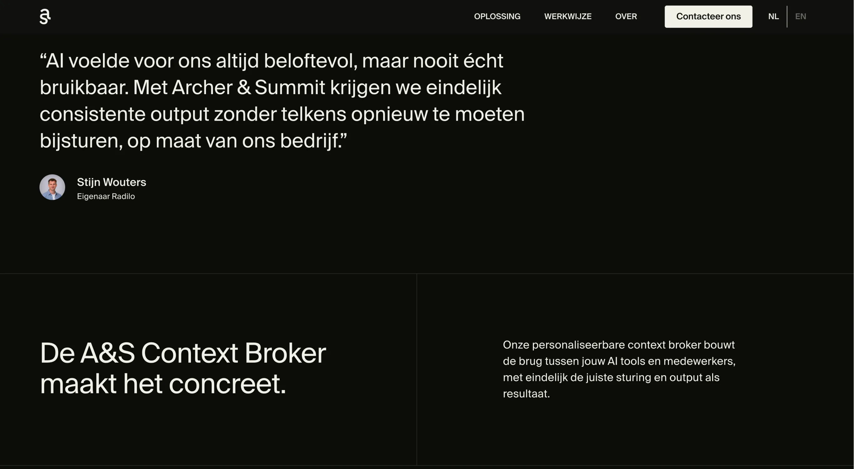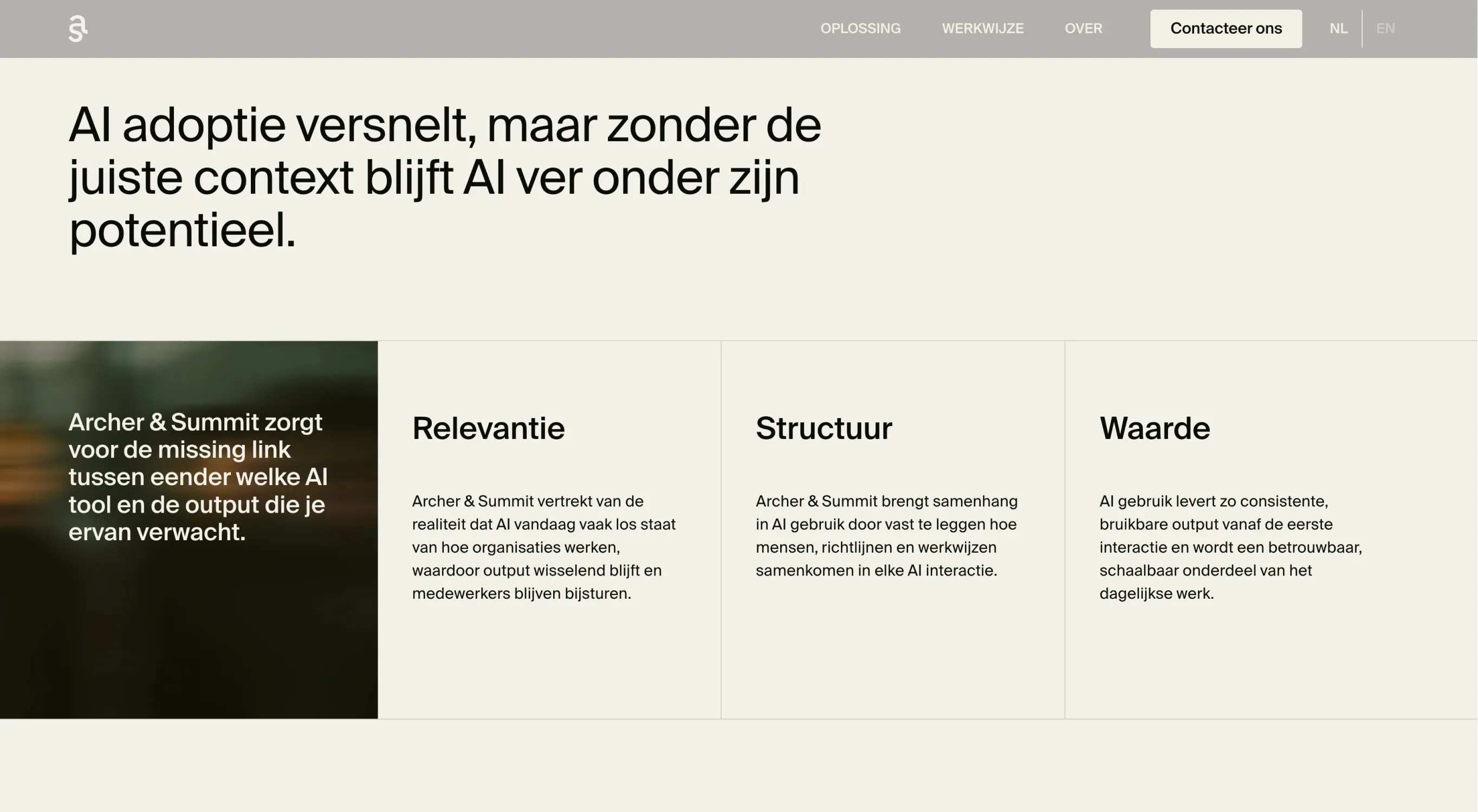 Archer & Summit helpt bedrijven AI afstemmen op hun echte interne context. De expertise was er, de naam was er, maar een identiteit om mee naar buiten te komen ontbrak nog.